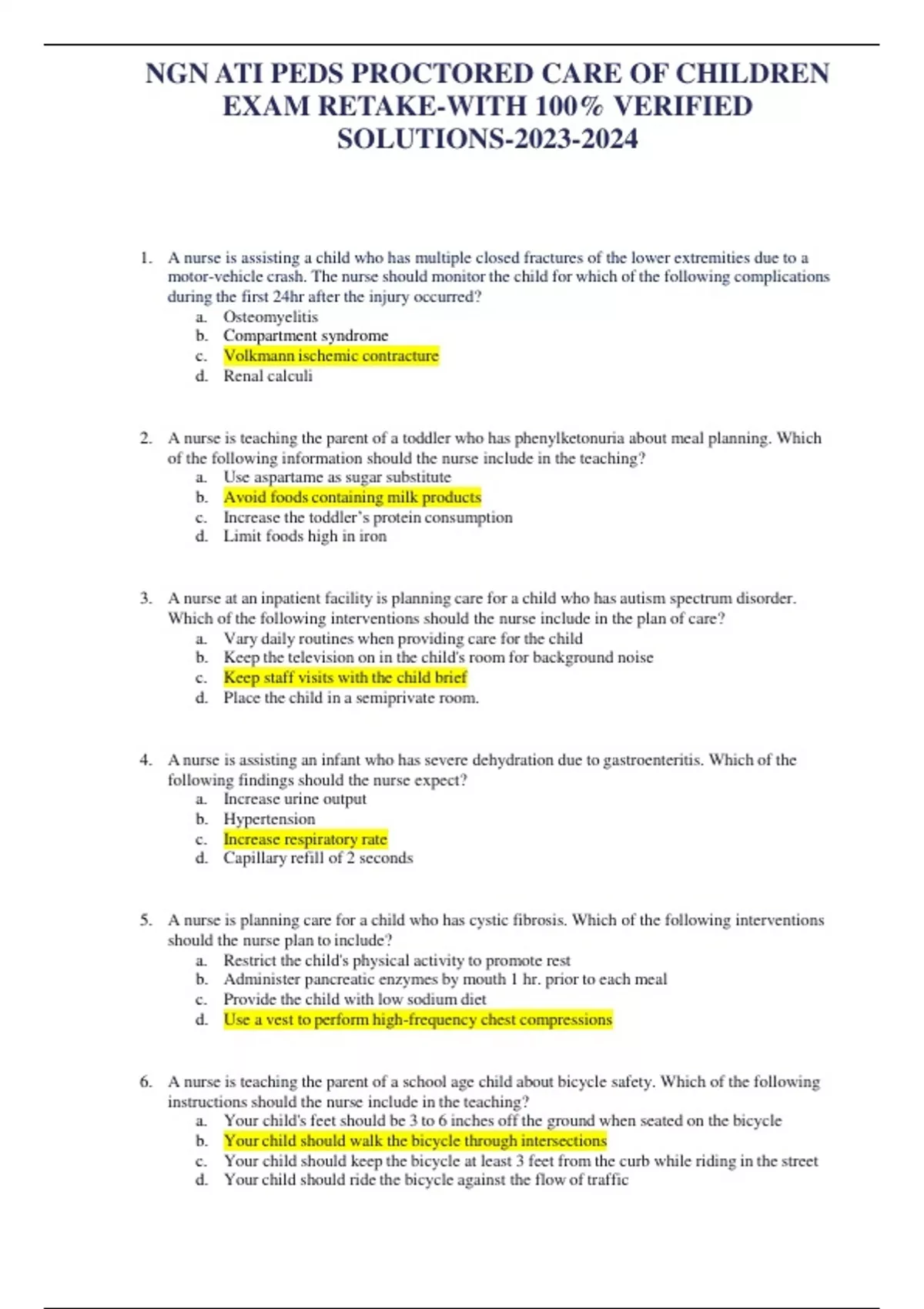 2019 ati pediatrics exam proctored with ngn| contains verified questions and answers with detailed rationales| updated. Which of the following actions is the nurse.