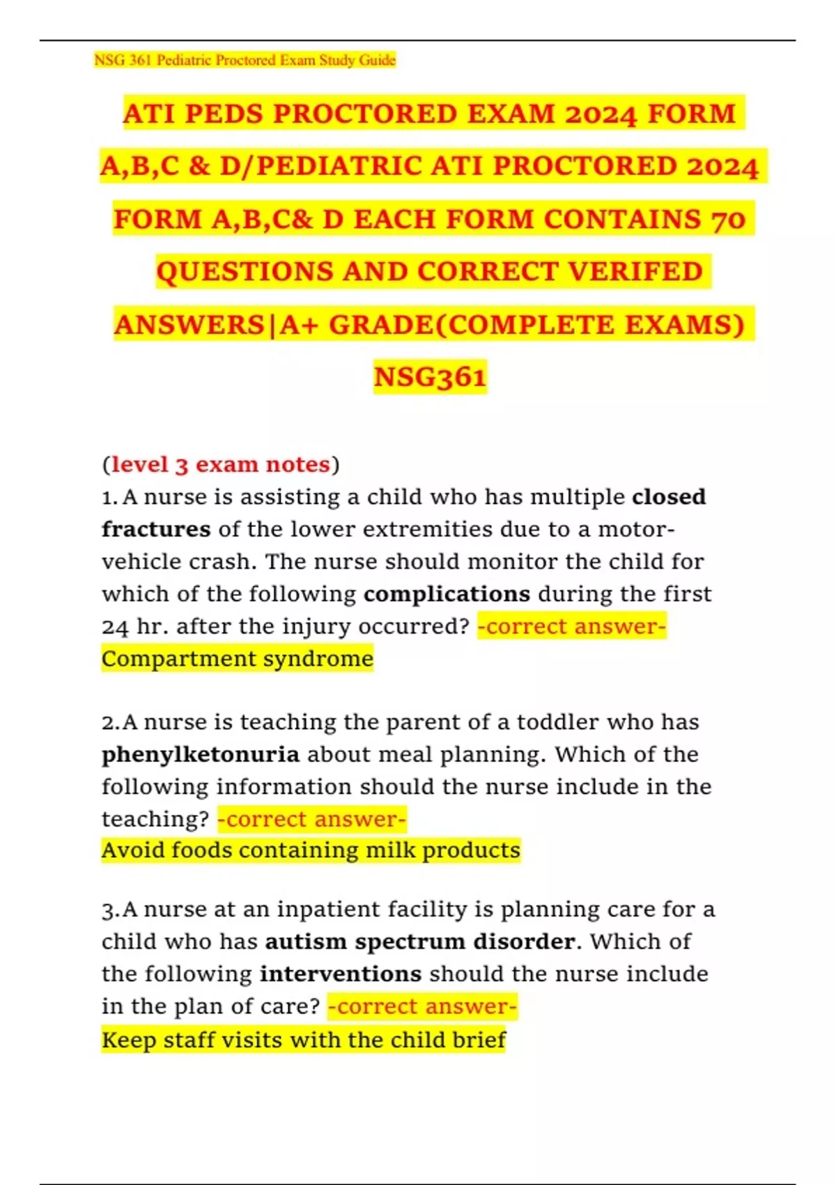 Ati Peds Proctored Exam 2022 Study Notes With Questions And Answers 2024/2025) (Complete And Verified) 300 Min.